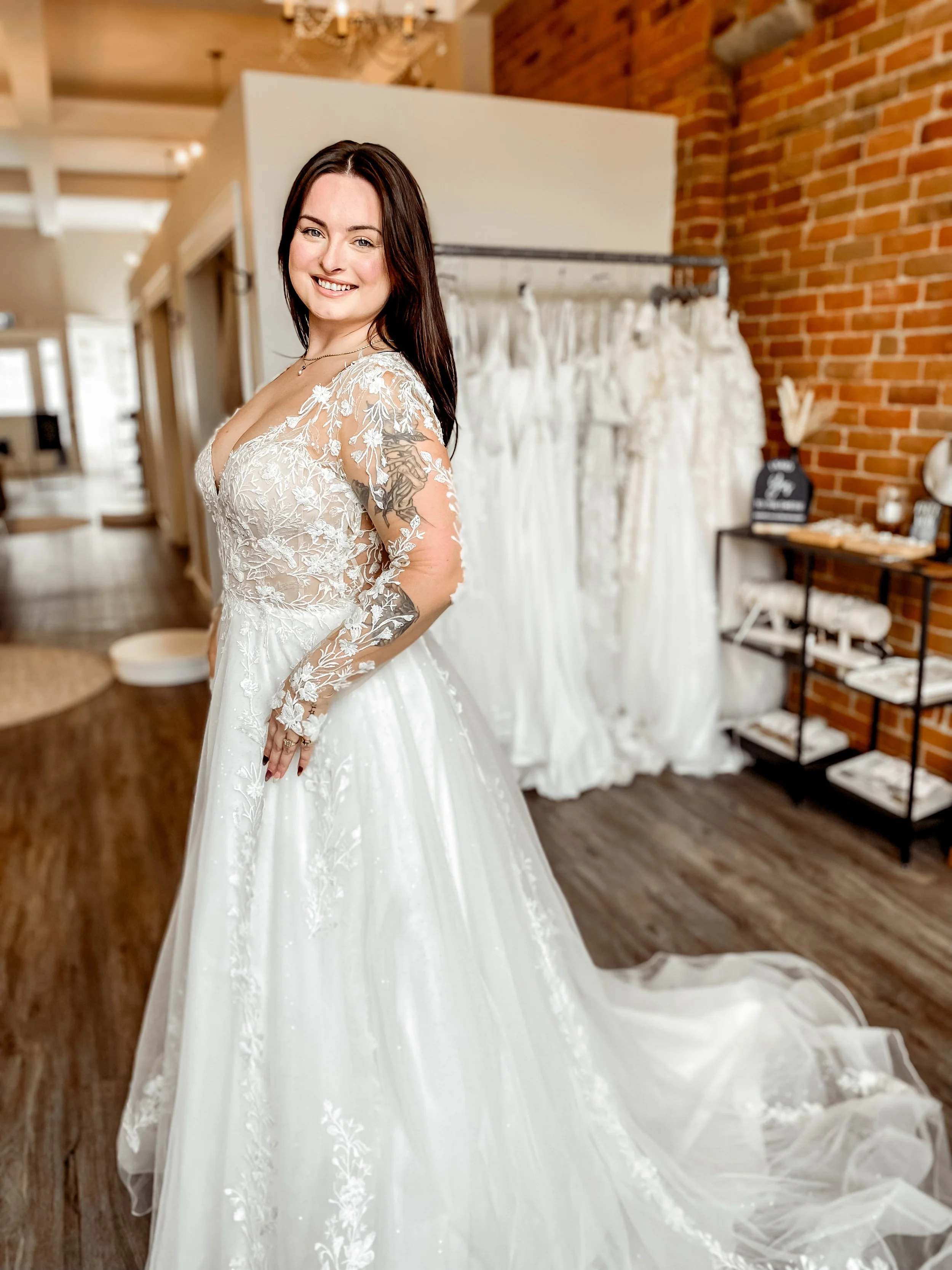 We carry a wide range of sizes from 6 to 32. Keep in mind that bridal sizing tends to fit smaller than regular clothing - most brides find they go up one or two sizes from their usual dress size. Your stylist will help determine the best fit for you during your appointment.